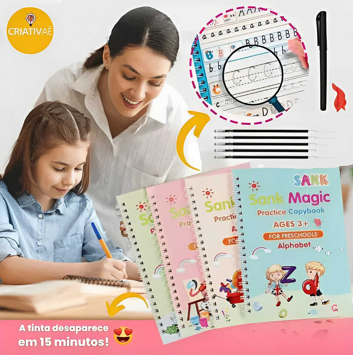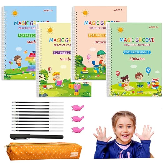 🟠 4 libros mágicos diferentes que incluyen letras de escritura, números de escritura, dibujo, matemáticas e ingles.