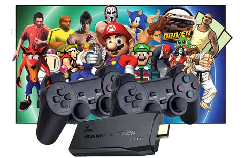 Con la consola Retro Game Stick, nos comprometemos a brindarte horas interminables de diversión y entretenimiento retro con clasicos como: Super Mario, Crash, GTA, Zelda, Red Alert, Sonic, Donkey Kong, Contra, Megaman, Pepsiman, Street Fighter, Pokemon, Pacman, Final Fantasy, Tekken, Tetris, King of Fighters, Mortal Kombat, Doom, Halo, Metal Gear, Metroid, SimCity y muchos más...