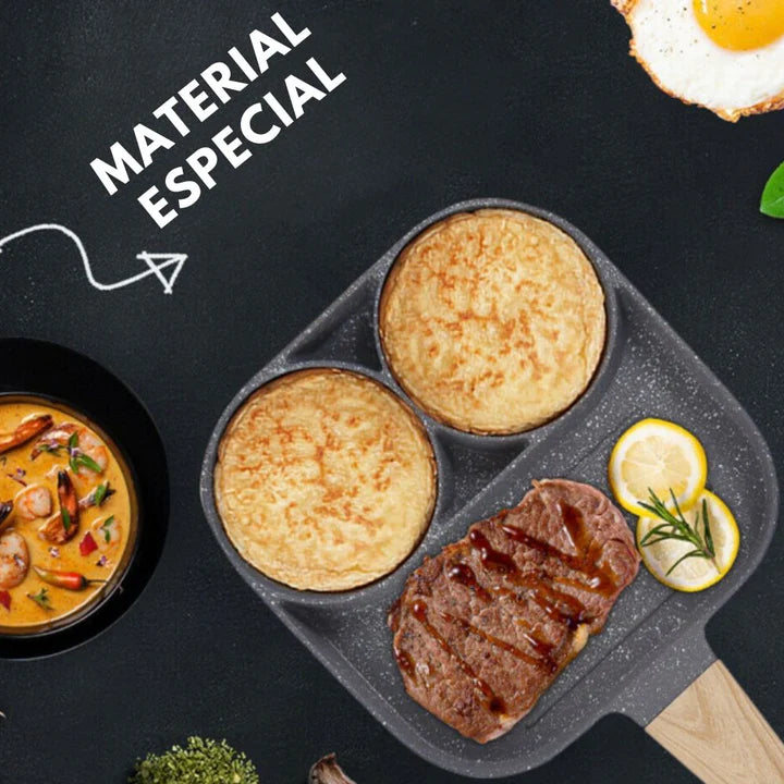 ✅ Sarten antiadherente 3 en 1 con parrila dividida y mango resistente al calor.